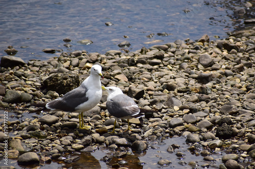 Fototapeta premium 河原に立つカモメの親子