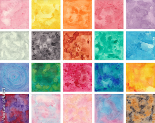 Naklejka premium 正方形の水彩テクスチャ20個セット(透明水彩イラスト)