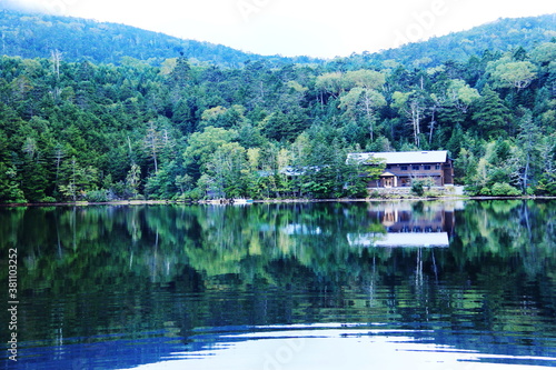 Fototapeta premium 初秋の北八ヶ岳 白駒池がある風景 白駒荘
