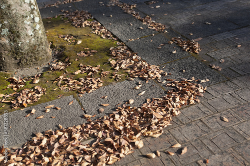 Fototapeta premium 歩道に集まった落葉