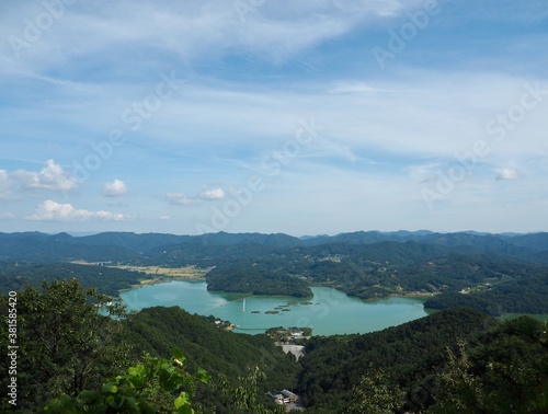 Fototapeta premium 한국 충청북도 대청호수와 산