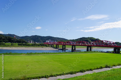 © y.tanaka, Obraz premium 秋晴れの四万十川の河川敷