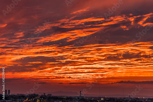 © NCP, Obraz premium 空を覆う雲に照らし出される赤い夕焼け
