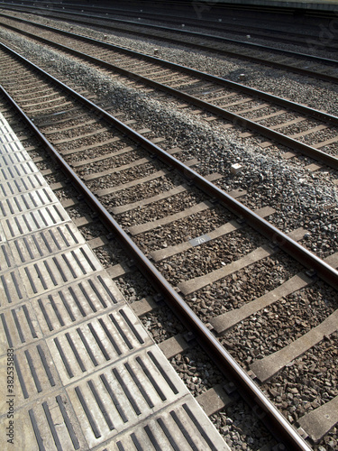 © Paylessimages, Fototapeta premium 鉄道の駅のホームとレール