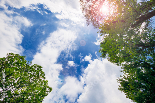 Obraz premium 太陽のひかりを浴びた新緑と青空