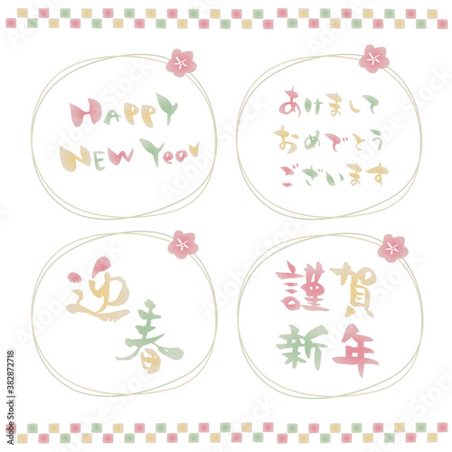 Fototapeta premium 年賀状 筆文字 水彩 挨拶文 タイトル