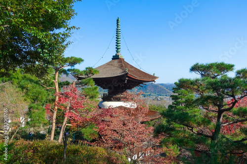 © WAWA, Obraz premium 紅葉に染まった京都・嵯峨野の常寂光寺(多宝塔)