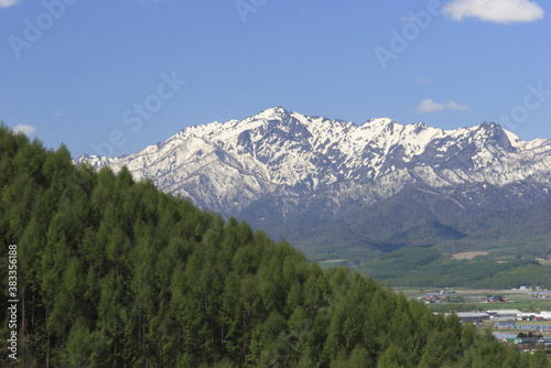 Fototapeta premium 芦別岳とカラマツ林