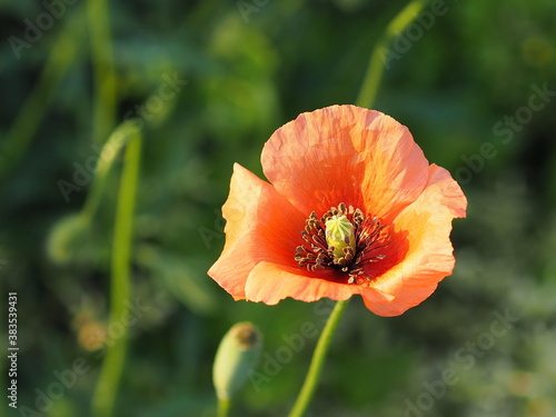 Obraz premium 朝日に照らされたポピーの花