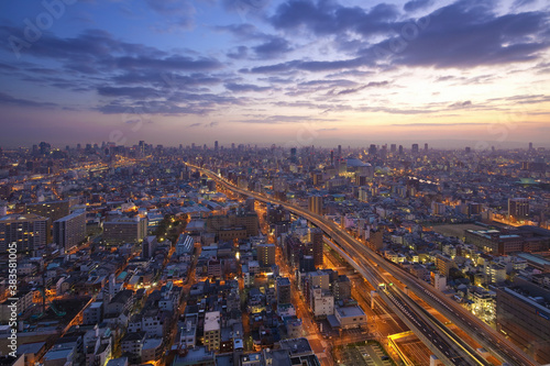 © Paylessimages, Fototapeta premium 大阪西区から見る市内の夜明け