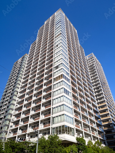 Fototapeta premium 臨海エリアのタワーマンション。2020年9月、東京都港区にて撮影。