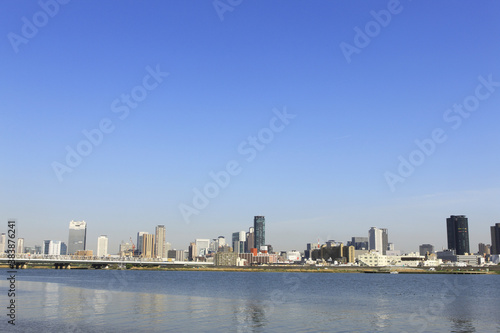 Fototapeta premium 大阪、淀川河川敷より梅田方向