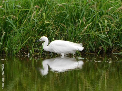 © 開運招福招き猫, Naklejka premium 休耕田で餌を探すコサギ