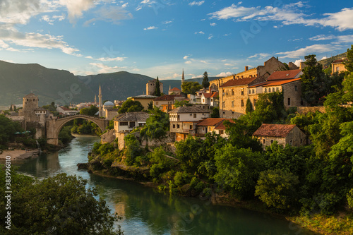 Obraz premium ボスニア・ヘルツェゴビナ モスタルのスターリ・モストとネレトヴァ川