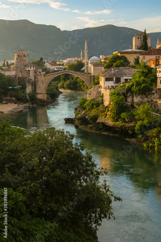 Obraz premium ボスニア・ヘルツェゴビナ モスタルのスターリ・モストとネレトヴァ川