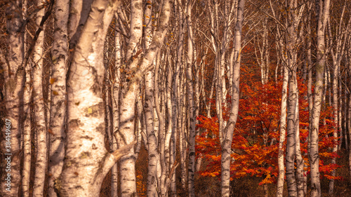 Obraz premium 長野県 白樺群生地 紅葉