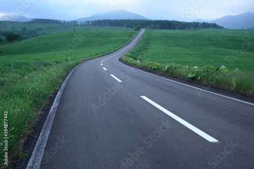 Fototapeta premium 青い夕暮れの一本道