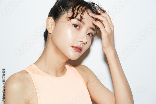 © K-Angle, Fototapeta premium スポーツウェアのスリムな若い女性のポートレート