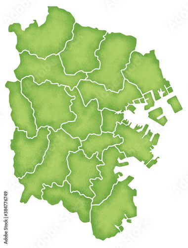 © Paylessimages, Obraz premium 横浜市の境界線入り地図