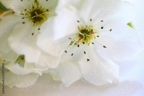 Obraz premium 透きとおる白い花びらの梨の花