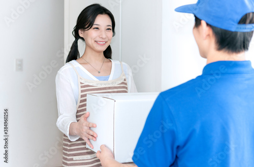 Obraz premium 宅配物を受け取る女性
