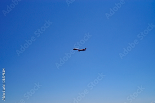 Fototapeta premium 青空と着陸態勢の飛行機・ジェット旅客機