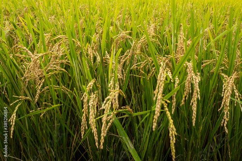 Fototapeta premium 収穫間近で見の詰まった稲穂