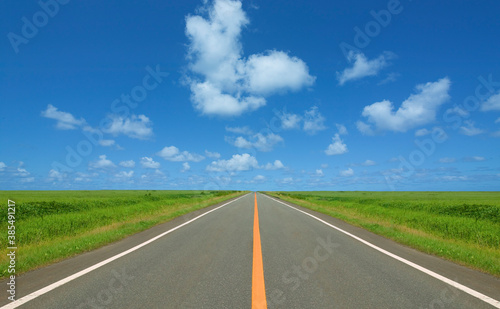 Fototapeta premium 草原の直線道路と雲