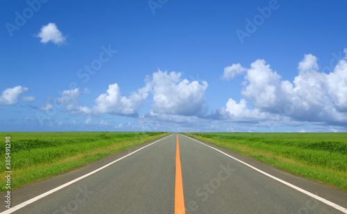 Fototapeta premium 草原の直線道路と雲
