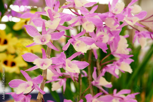 Obraz premium 細い花弁を突き出し咲き誇るデンドロビューム