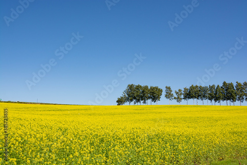 © kinpouge, Obraz premium ナノハナ畑とシラカバ並木 美瑛町