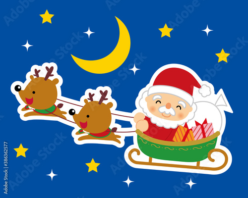 © tomaco, Naklejka premium ソリに乗るサンタクロースとトナカイ イラスト