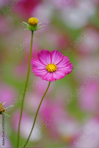 Obraz premium 秋桜畑に咲く濃いピンク色のコスモス