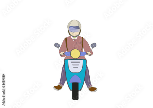 Fototapeta premium 原付バイクに足を伸ばして乗る危険な運転をする人