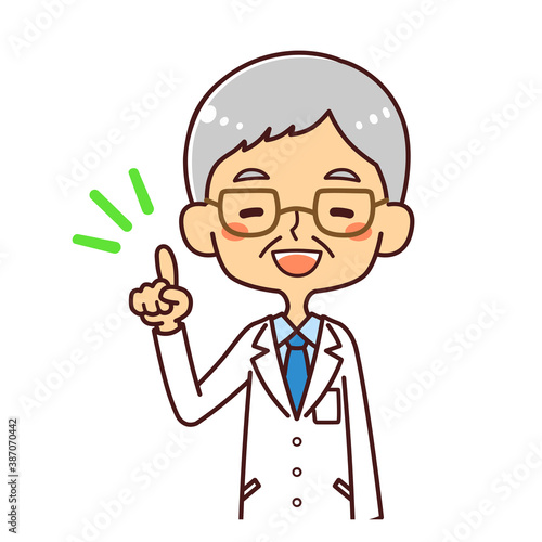 Fototapeta premium 医者 ドクター シニア男性 指差し イラスト