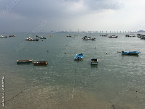 © HONG, Obraz premium 작은 배들이 보이는 바다 풍경
