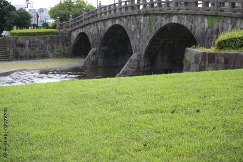 © あゆみ 柴田, Fototapeta premium 緑の芝生と石橋