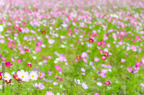 Obraz premium 淡い色合いのピンクのコスモス畑
