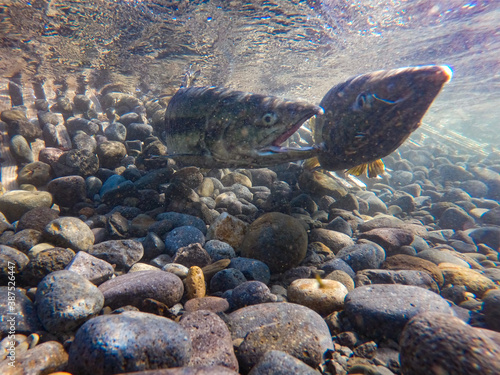 © tkyszk, Obraz premium 水中撮影 川を上る鮭 北海道増毛町