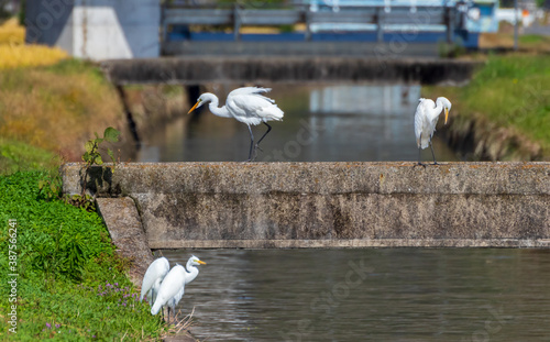 © kunio, Obraz premium 稲刈り後エサを探すサギ