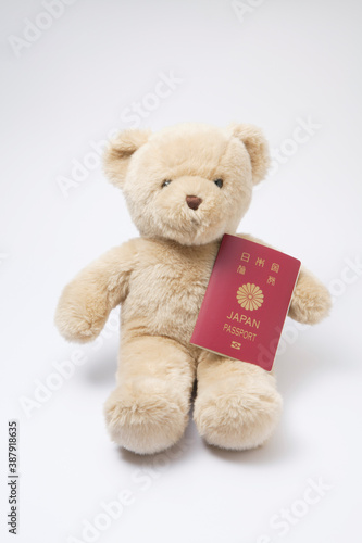 Fototapeta premium パスポートを持ったクマのぬいぐるみ