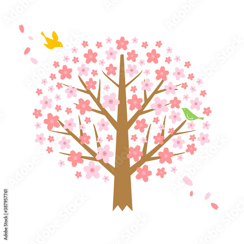 © kinoco, Fototapeta premium 桜の木と鳥のイラスト