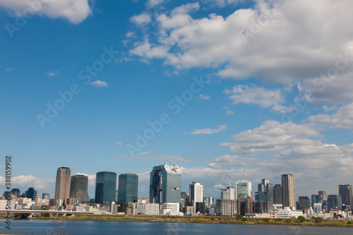 Obraz premium 淀川河川敷より大阪のビル群