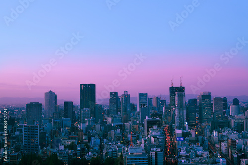 Naklejka premium 大阪の街並、北区方面の夕暮れ