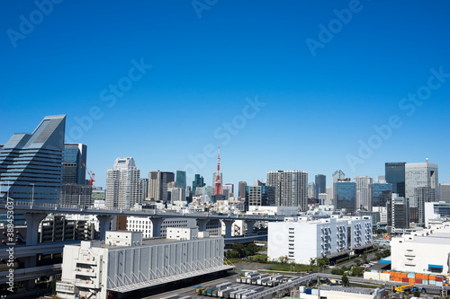 Naklejka premium 東京レインボーブリッジから望むベイエリアの風景