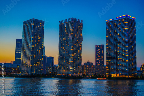 Fototapeta premium 東京都中央区の高層マンション群と夕景