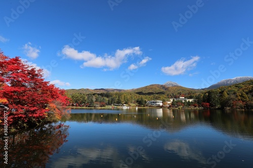 © narautsu, Obraz premium 蓼科湖 紅葉と雪景色