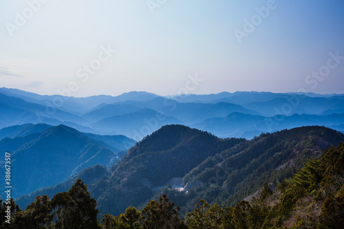 Obraz premium 玉置神社から見た山々の風景