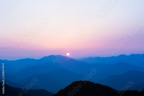 Obraz premium 玉置神社から見た山々の夕景
