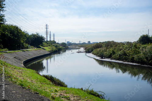 Fototapeta premium 秋の晴れた日の芝川の風景